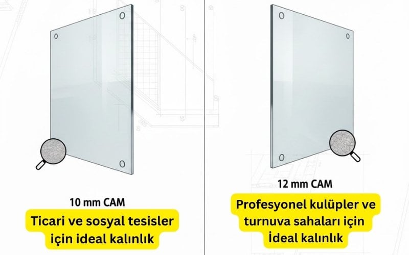 Ekip Spor, projenin kullanım amacına göre doğru cam kalınlığını teknik analizle belirler.