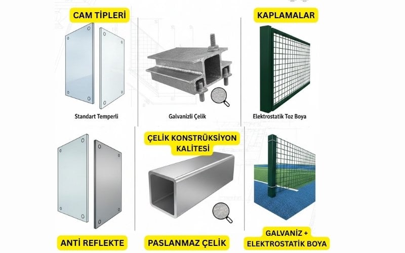 Cam kalitesi, çelik konstrüksiyon dayanımı ve kullanılan kaplamalar; yalnızca saha ömrünü değil, oyun kalitesini, güvenliği ve yatırımın geri dönüş süresini (ROI) doğrudan etkiler.
