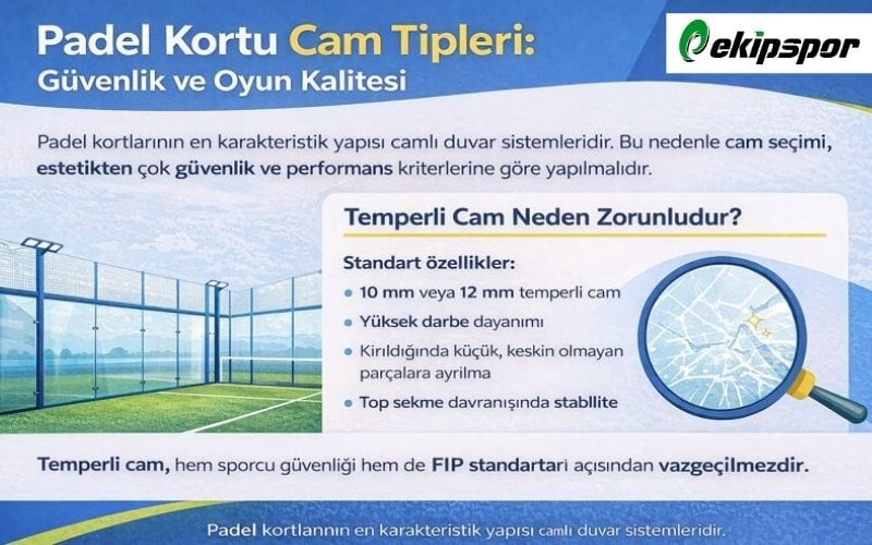 Padel kortlarını tenis kortundan ayıran en karakteristik özelliği camlı duvar sistemleridir. Bu nedenle cam seçimi, estetik görünümden ziyade güvenlik ve performans kriterlerine göre yapılmalıdır.
