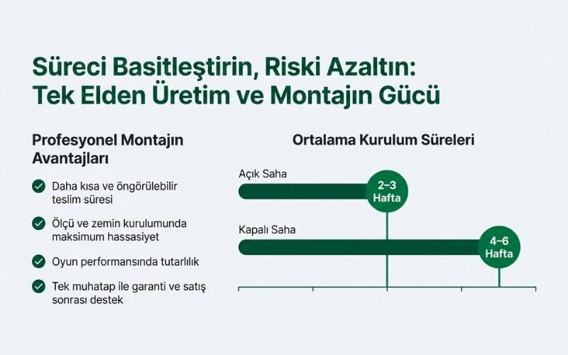 Profesyonel padel kort projelerinde üretim ve montaj süreçlerinin tek elden yürütülmesi, maliyet ve kalite açısından kritik bir avantaj sağlar.