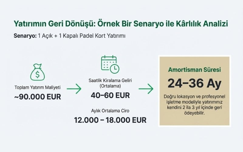 1 açık + 1 kapalı padel kort yatırımı: