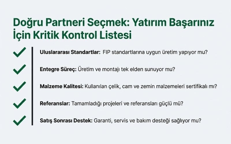 Bu maliyetlere; galvanizli çelik konstrüksiyon, temperli cam paneller, zemin sistemi, montaj ve temel üretim süreçleri dahildir.